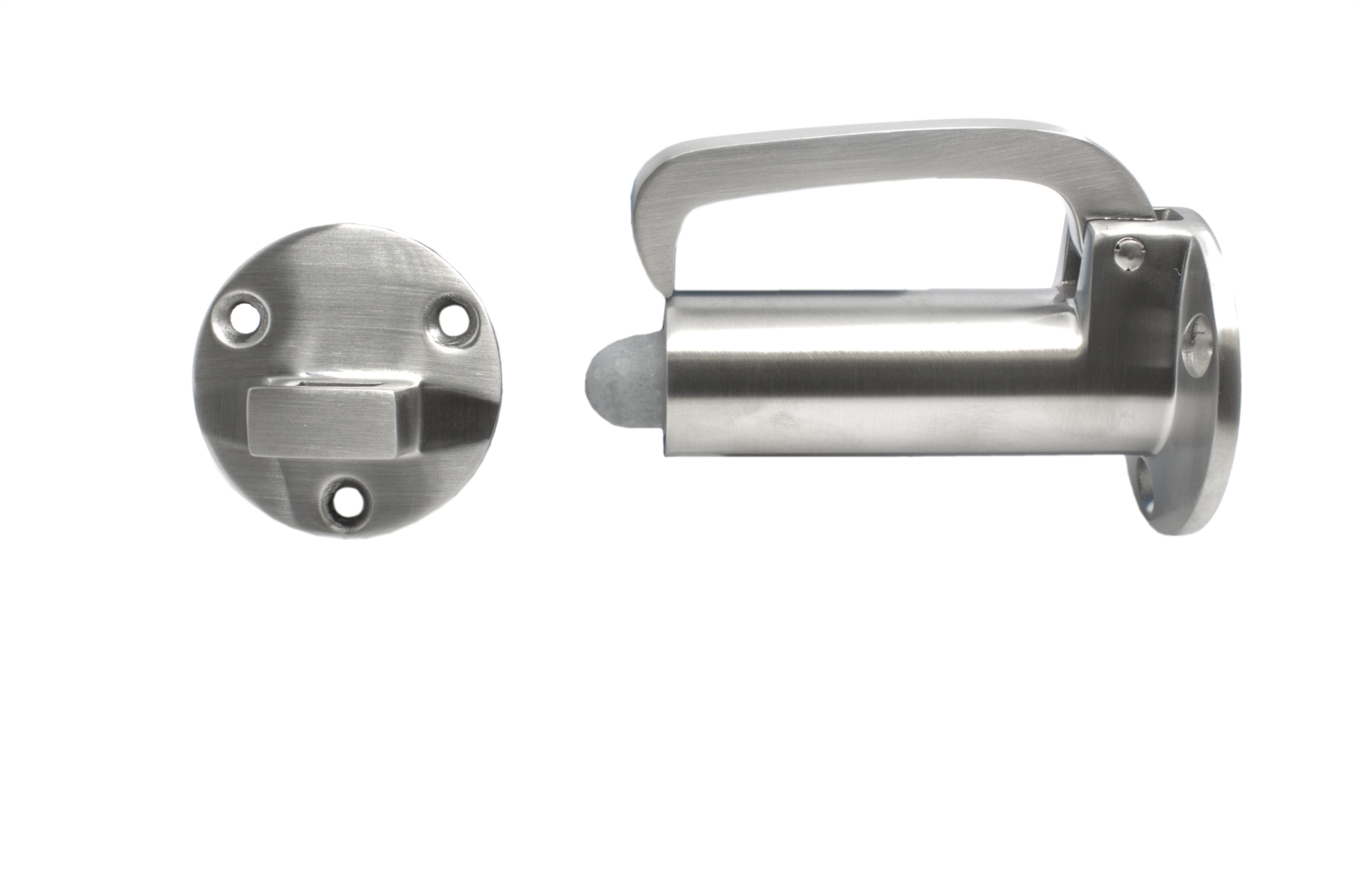 N-251501.4 Niro pol Türfallhaken DIN 81406 A. 90 mm. mit Fangplatte 0,440 Stck